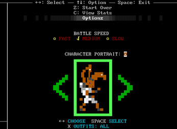 you can press h to open one help manual and m to open a different one. To select an option, press down until the blue arrows are next to that option, then press space. At the beginning, you are in a prologue where there is very limited card battling and you have no deck. You should talk to NPCs by walking into them and interact with objects in the same manner to figure out the plot and your character's identity. You move with the arrow keys and cannot move diagonally (except via glitches in a handful of circumstances). There is no consistent way to tell which tiles are walkable and which aren't, but you can walk on any tile an enemy walks on and the tiles with three horizontal lines tend to be doors. Screen edges mostly lead to new maps if you can walk on the spots next to them, but not always, and sometimes only from certain spots along the edge. Things that flash yellow are important. You fight enemies with cards, and get 2 actions per turn. If you encounter an enemy near another enemy, you may get a single fight with both enemies at once, which is usually bad but sometimes good. Your goal is to stop ZoZ but it's actually to get married but its actually to negotiate the boundary between a post-apocalyptic anarcho-communist society and a dystopian late-stage capitalist one in a coming-of-age adventure story.